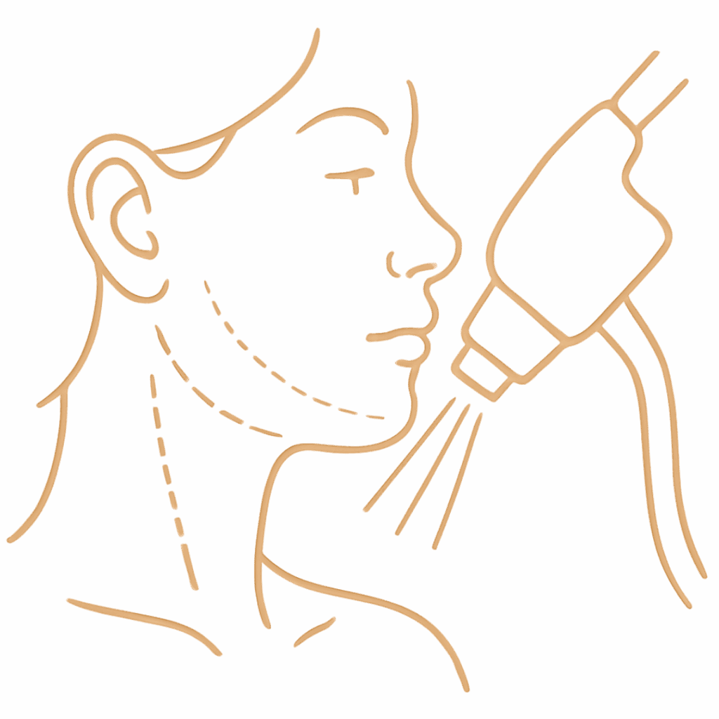 Während der Behandlung wird die Laserfaser über eine feine Kanüle in das Fettgewebe eingeführt. Die Laserenergie löst Fettzellen gezielt und stimuliert gleichzeitig das Bindegewebe zur Hautstraffung.